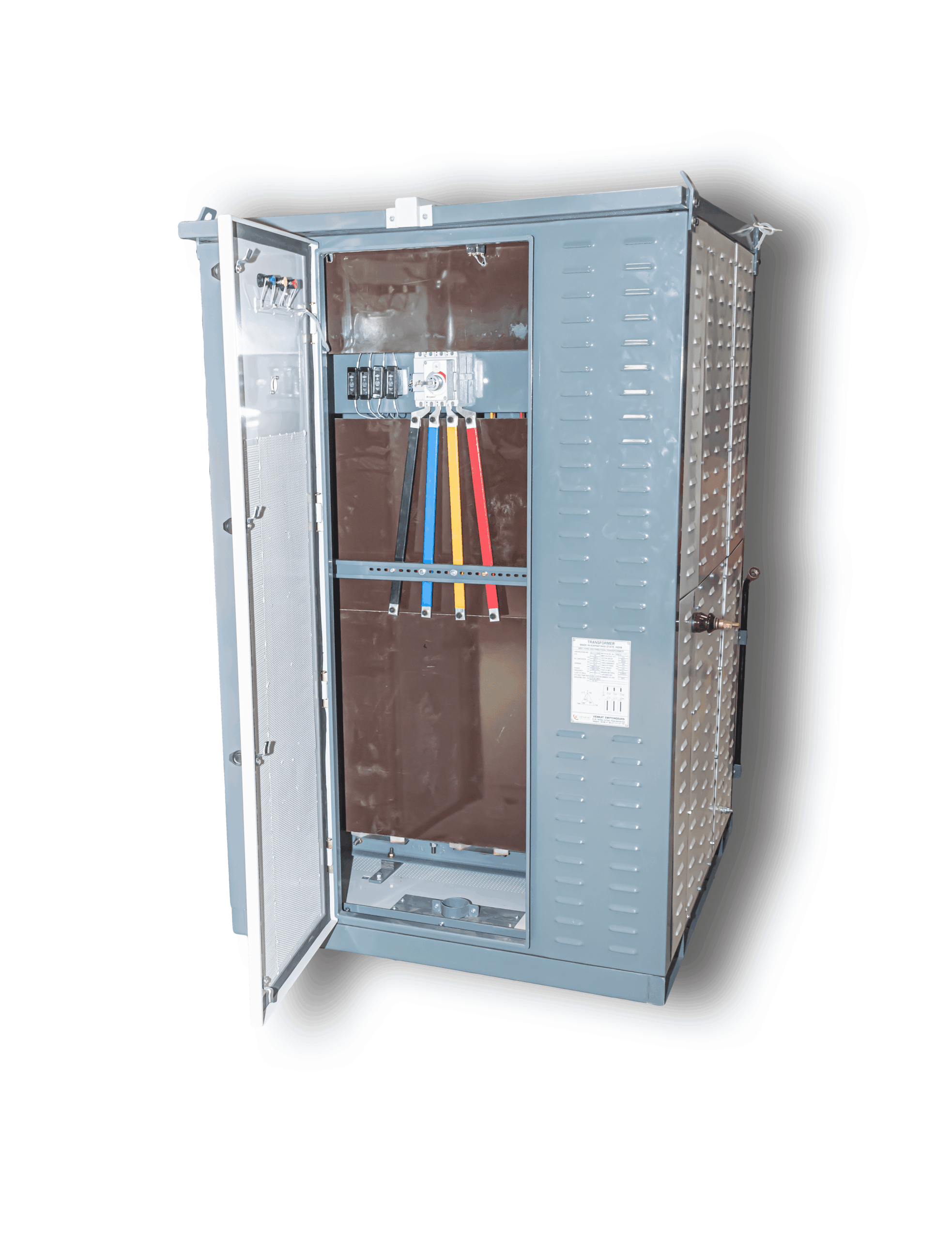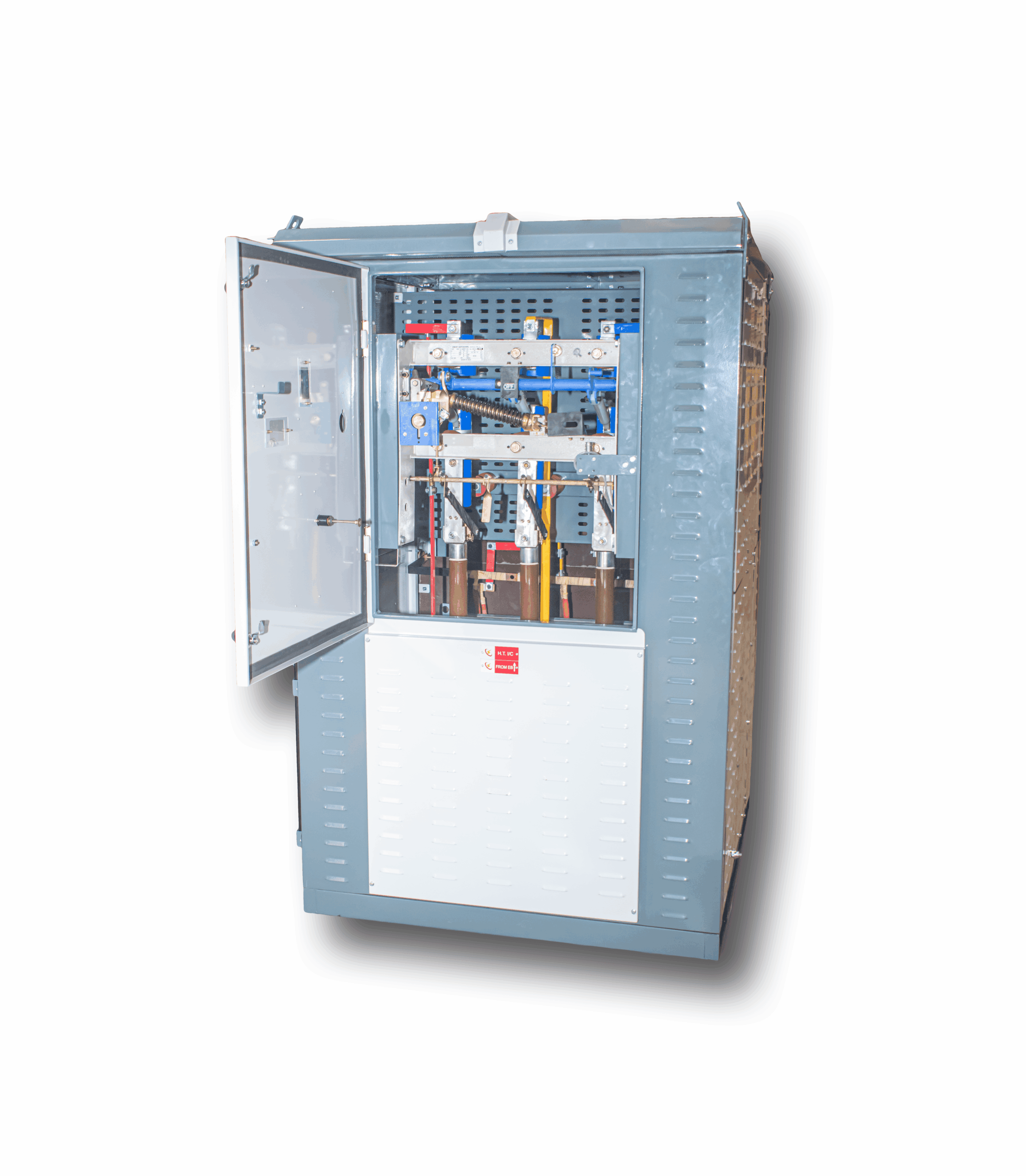 The compact substation is a Global solution with three compartments connected directly without cable onto a metallic chassis.