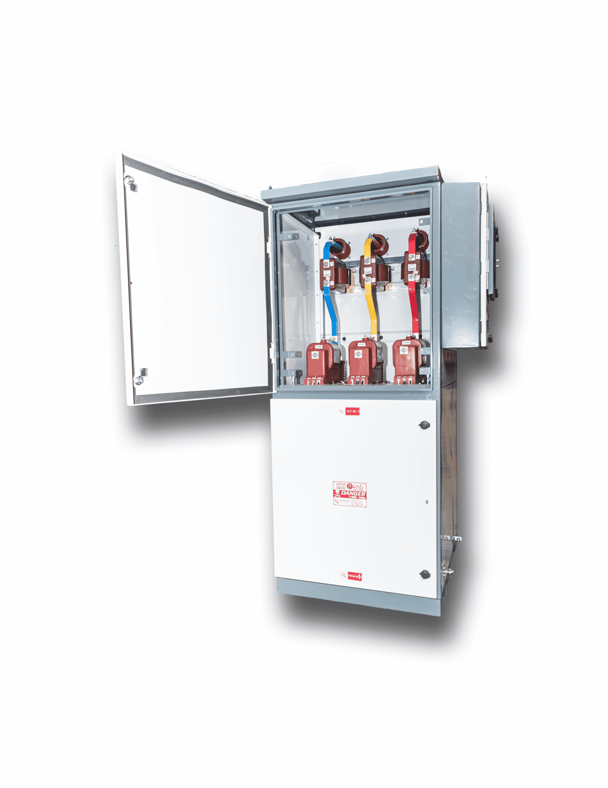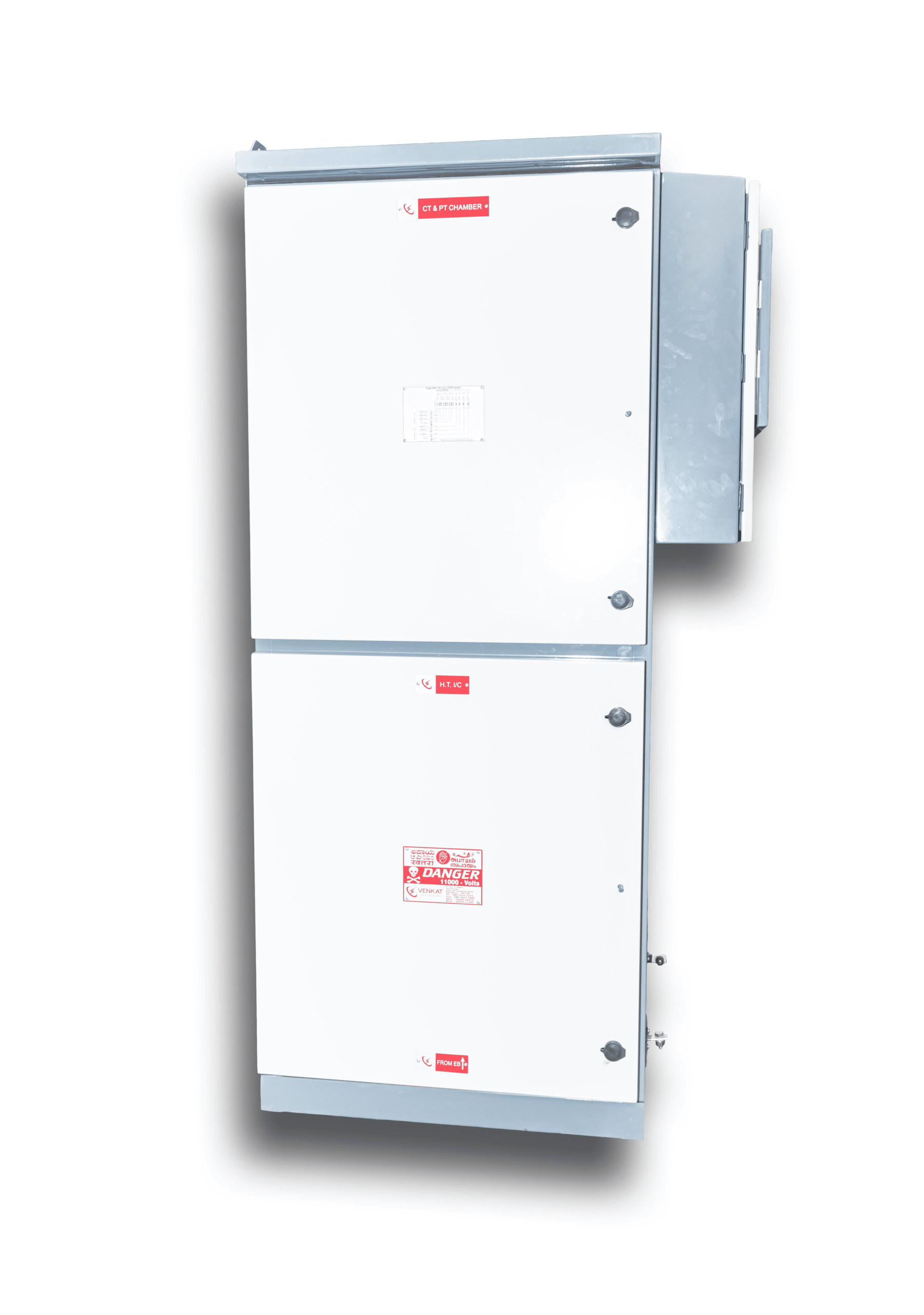 Metering Cubicle is manufactured with zero bushings i.e., the outgoing and incoming Cables are provided with the bottom cable entries as per EB norms. The Cubicle is divided Into four chambers – One for incoming, One for outgoing, one for CTs & PTs, and one more for energy meter. The cubicle is dustproof and Pilfer Resistant/ Tamper Proof.